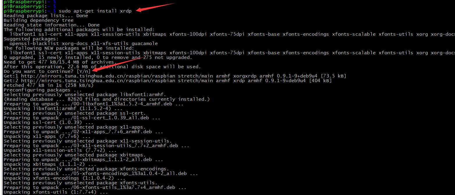 在命令行输入sudo apt get install xrdp,在Y/n处按回车即可。