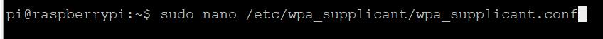 在树莓派命令行输入sudo nano /etc/wpa_supplicant/wpa_supplicant.conf命令