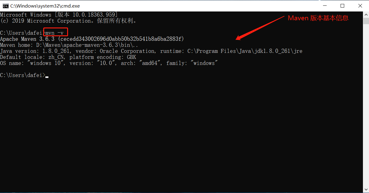 然后,输入:mvn -v