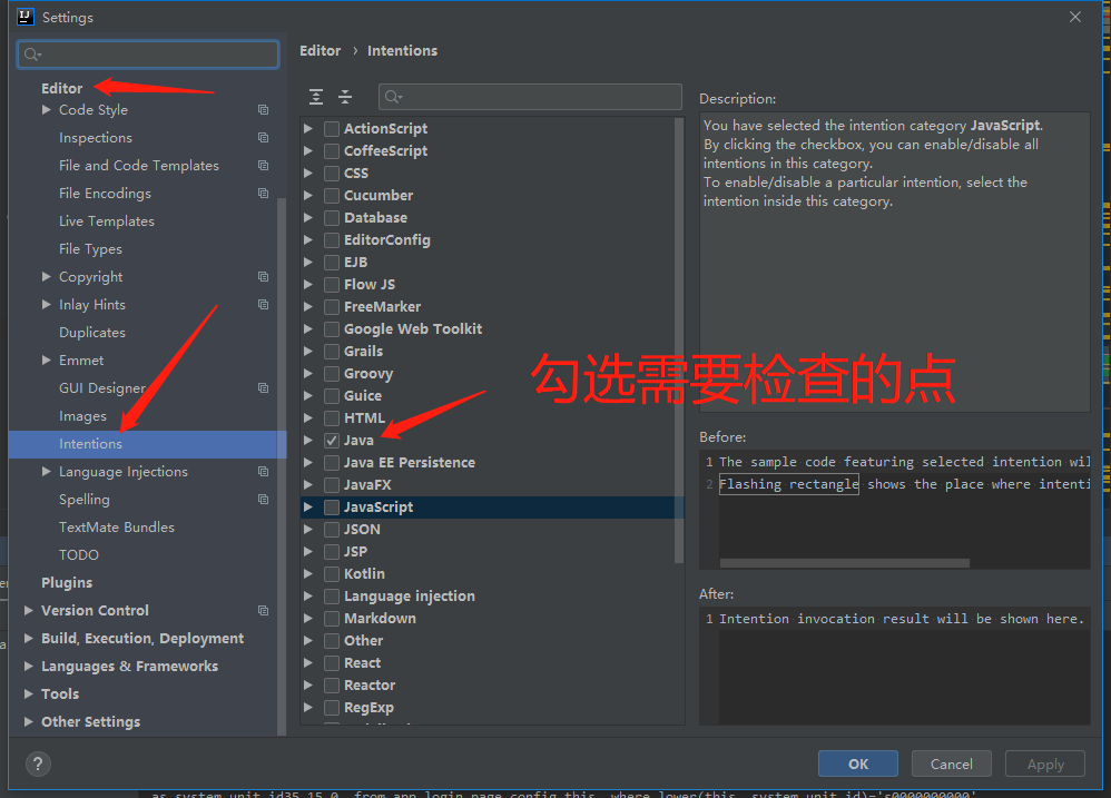 file->settings->editor->inspections