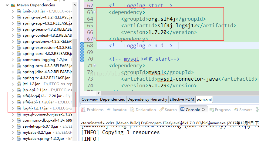 pom.xml文件也不会出现错误提示。(log4j:1.2.17:missing)