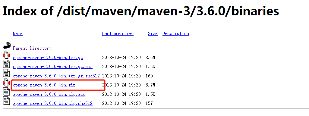 选择 apache-maven-3.6.0-bin.zip ,然后下载
