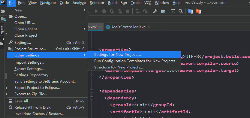在File----Other Settings---Settins for New Projects中的设置(这是让以后创建maven项目都是用这种方法)