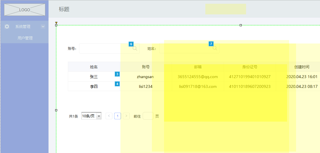 登录后的用户管理,主要是通过各种层来实现,大致如下,详情请下载axure8设计rp原稿。