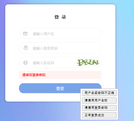 - 输入框前面设置小icon提示和美化输入框,密码输入框设置password类型;密码输入框下方是静态图片验证码输入框;