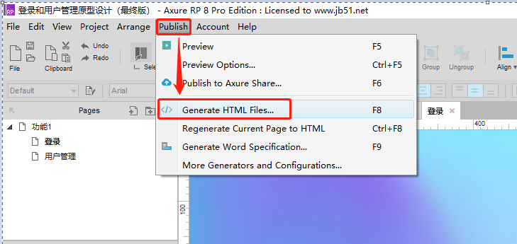 Axure8中,通过Publish-》Generate HTML Files…导出HTML页面