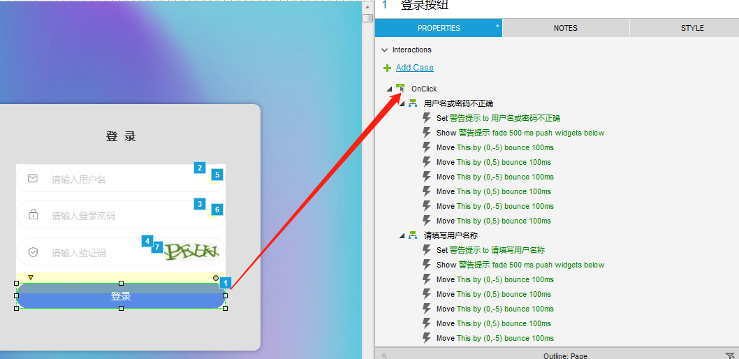 - 对于错误提示,可以通过设置动态面板实现,因为错误提示有很多种,不同的错误,对应动态面板的不同状态。