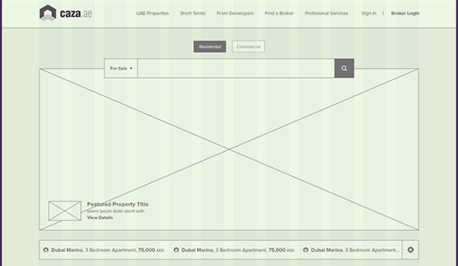 这个线框图例子是由迪拜的设计师Waseem Arshad设计的。他认为即将到来的房产类网站应该具有干净的界面,直观的信息展示和响应式设计。该线框图例子比较详细,清楚地解释了工作流程。