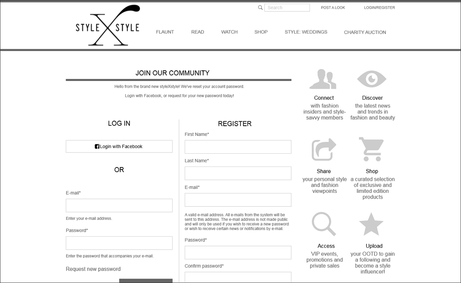 StyleXstyle是一个非常时尚的线框原型图例子。它有基本的页面,如细节,登录,慈善拍卖,个人资料等。每个页面都精心设计,每个元素都有序放置。用户可以通过导航轻松找到他们想要的东西。