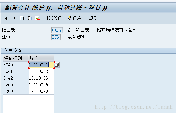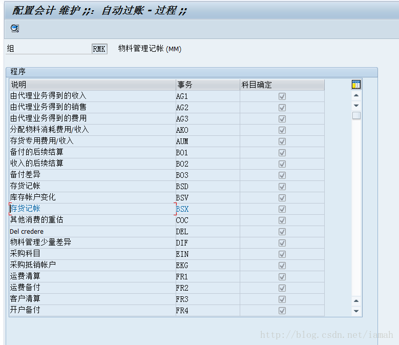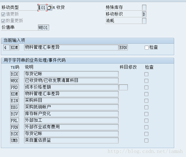 首先由收货时的移动类型决定一组Transaction,后台配置OMJJ