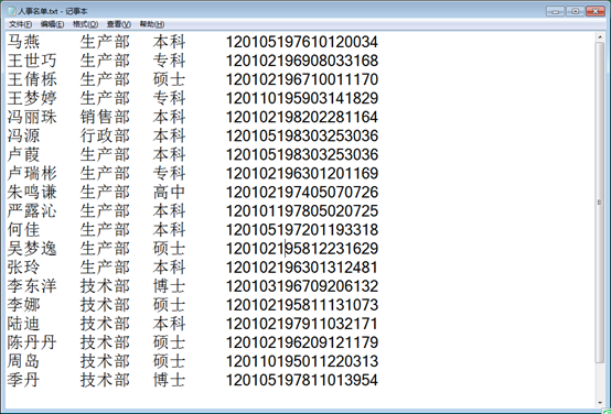 如图,已有"人事名单"的文本文件。