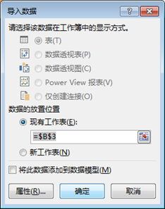 步骤5:在"导入数据"对话框中,选择数据放置的起始位置后,单击"确定"。