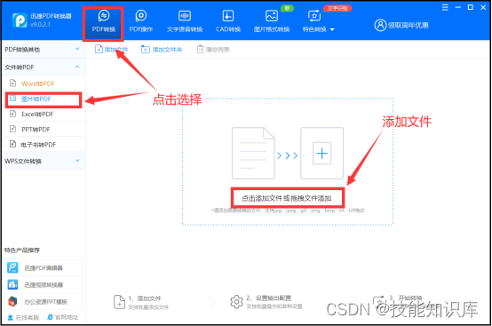 ① 首先,我们在页面中点击【图片转PDF】,把文件添加进来。