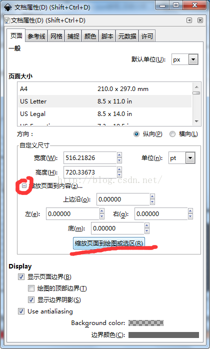 c、文件->文档属性->点开缩放页面到内容的小加号->缩放页面到绘图或选区