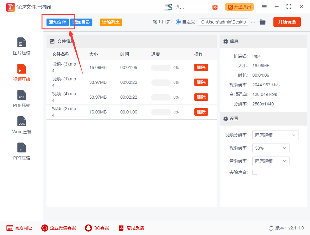 第二步 点击【添加文件】按钮或用鼠标拖拽,把要压缩的视频文件全部添加到软件中,等待压缩指令。