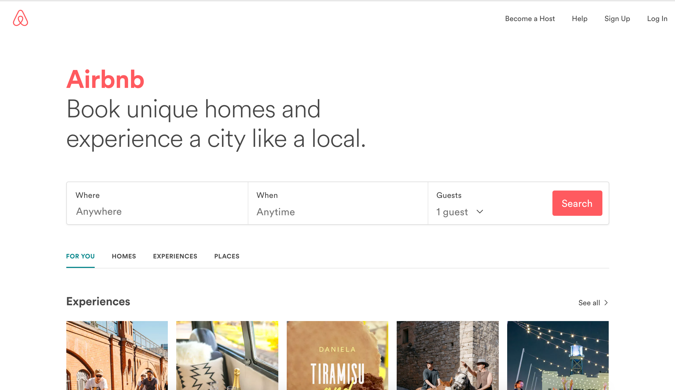 很明显, Airbnb这是一个Z 型布局的典型网页,更多的内容可以通过纵向滚动放在首屏以外.