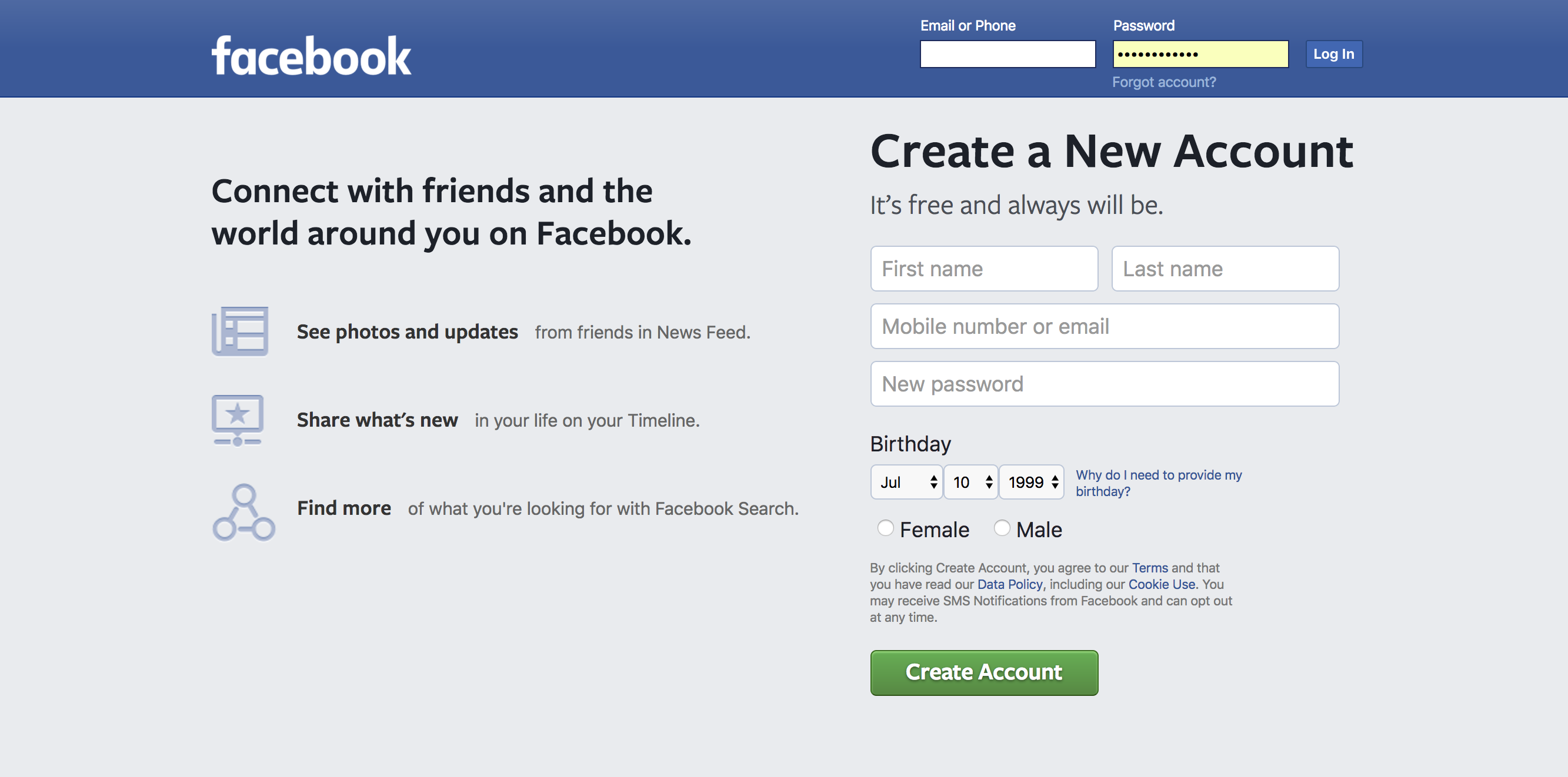 Facebook看起来很复杂,但仔细看一下不难发现这是一个很典型的以”下载”按钮为 结束点的 Z 型网页布局.
