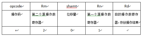 这里忽略位移量这个参数,按照指令格式将1+2填入此表:
