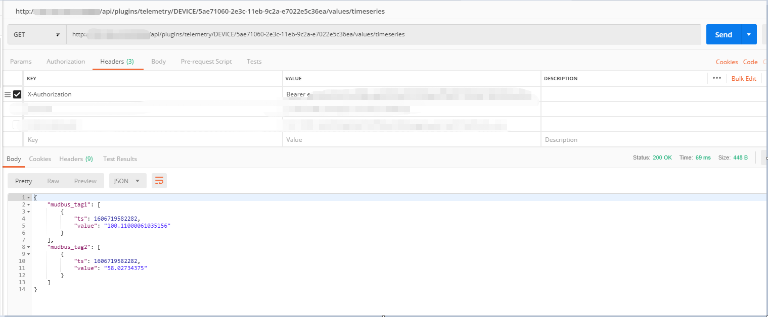 curl -X GET --header 'Accept: application/json' --header 'X-Authorization: Bearer --token' 'http://127.0.0.1:8080/api/plugins/telemetry/DEVICE/75a82e30-697f-11e9-8f29-453c4a68cf5e/values/timeseries?limit=100&agg=NONE&keys=key1%2Ckey2&startTs=1451649500512&endTs=1556435934100'