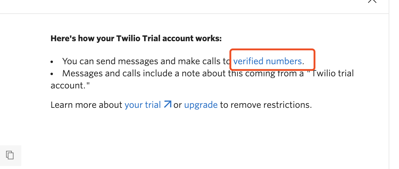 接收号码在使用前,需要在 Twilio 上验证下,点击右侧的 verified numbers 进入,添加号码。