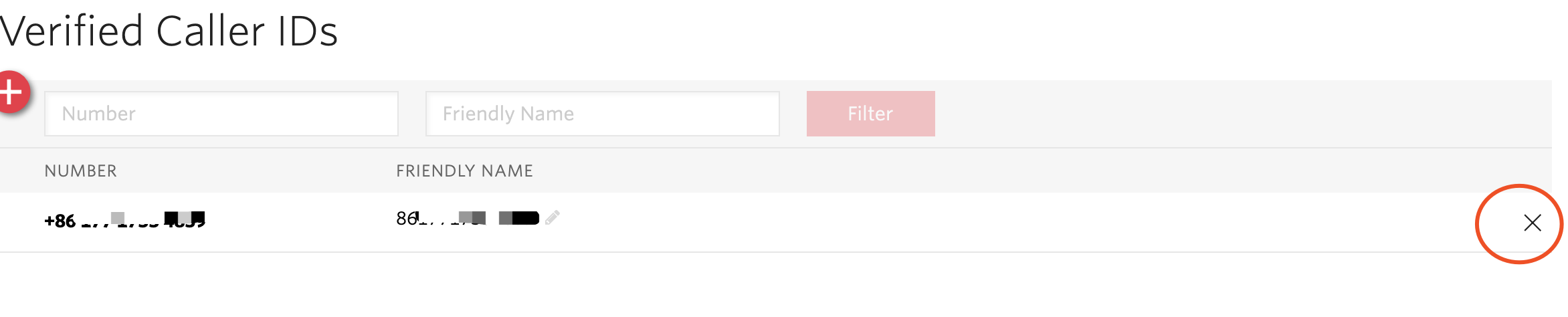 因为这是免费版,所以只支持一个号码,如果之前有验证号码的话,我们需要点击右侧的 X 把这个号码号码删除才能添加新的号码。