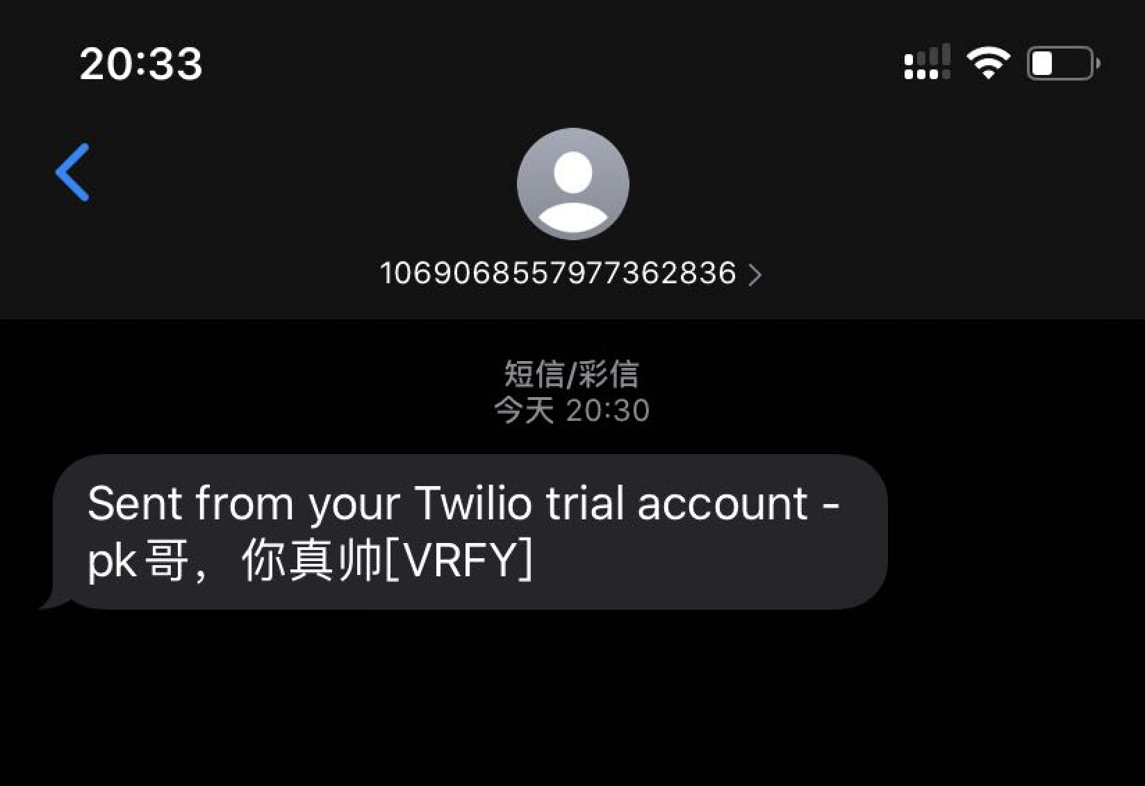 再把 message 中的 body 换成你自己的文本,把发送信息的号码换成刚官方提供的号码。