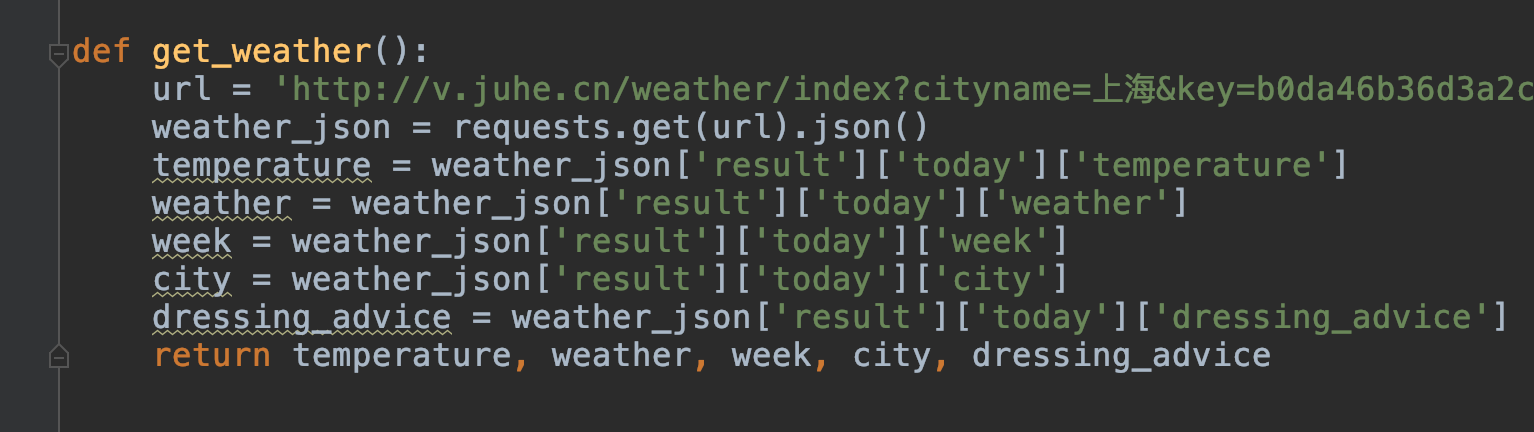 把其中的 key 换成自己的,具体操作详见这篇文章天气变冷了,给父母制作一个天气提醒小助手。