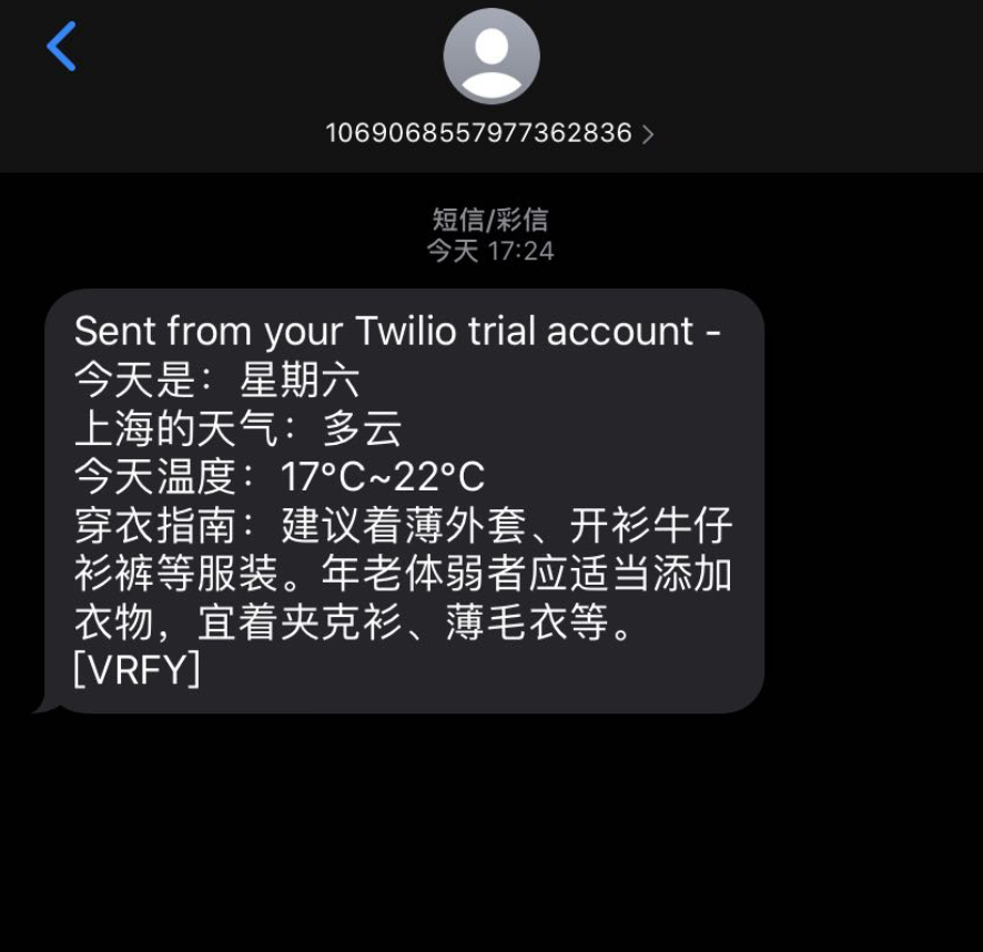 鉴于 twilio 免费次数多一些,所以,这次我们就 twilio来发送当天的天气信息给爸妈了。