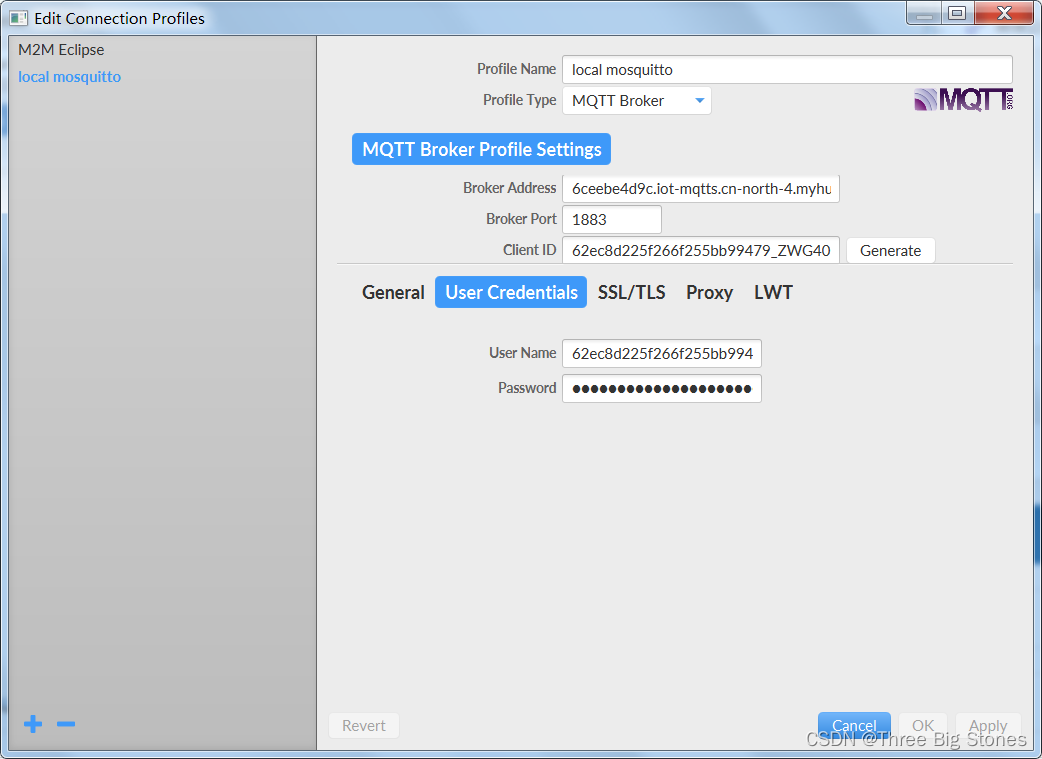 需要填写clientid,broker地址,端口号,用户名和密码,