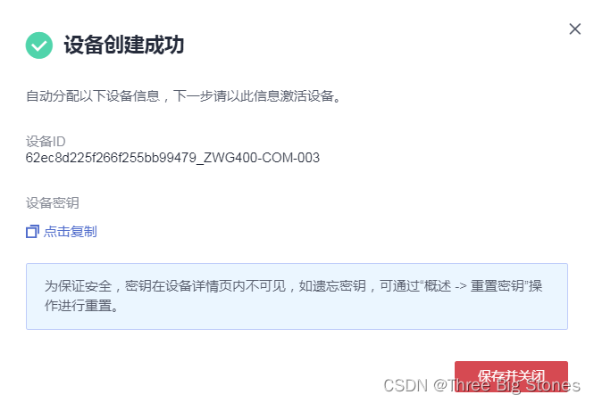 可以把设备的密钥复制下来,并保存起来,后续与华为IOT平台通信将会使用到,