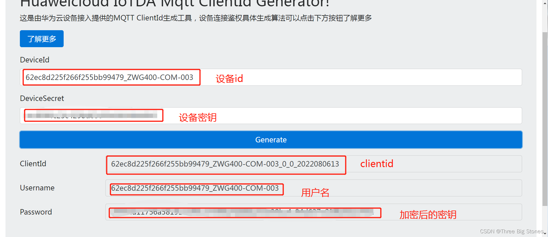 使用华为工具生成:Huaweicloud IoTDA Mqtt ClientId Generator