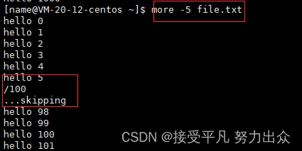 功能:more命令,功能类似cat(对文本分批查看,但只能向下看)