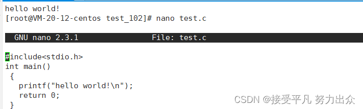 最后输入gcc test.c +./a.out就可以完成第一个程序的运行;
