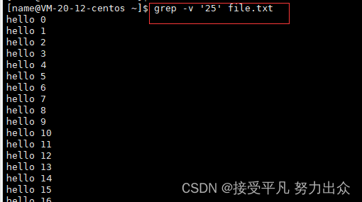 - -v :反向选择,亦即显示出没有 ‘搜寻字符串’ 内容的那一行