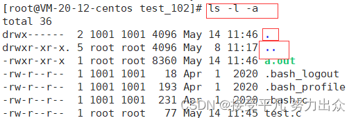 实例3:ls -l -a:显示隐藏文件;'.'当前路径,”..“上级路径