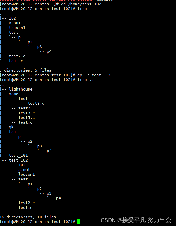 注意:这里tree要安装:首先用这个语句yum install -y tree,如果这个不行则换用这个yum install -y