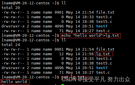 追加重定向(>>):不清空原本内容,在原本内容上追加