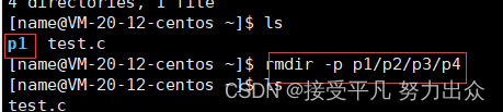 -p 当子目录被删除后如果父目录也变成空目录的话,就连带父目录一起删除