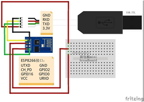 第一步:通过USB-TTL连接ESP8266设置AT指令,保存透传模式。(整个实验的关键!!)