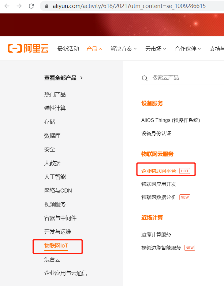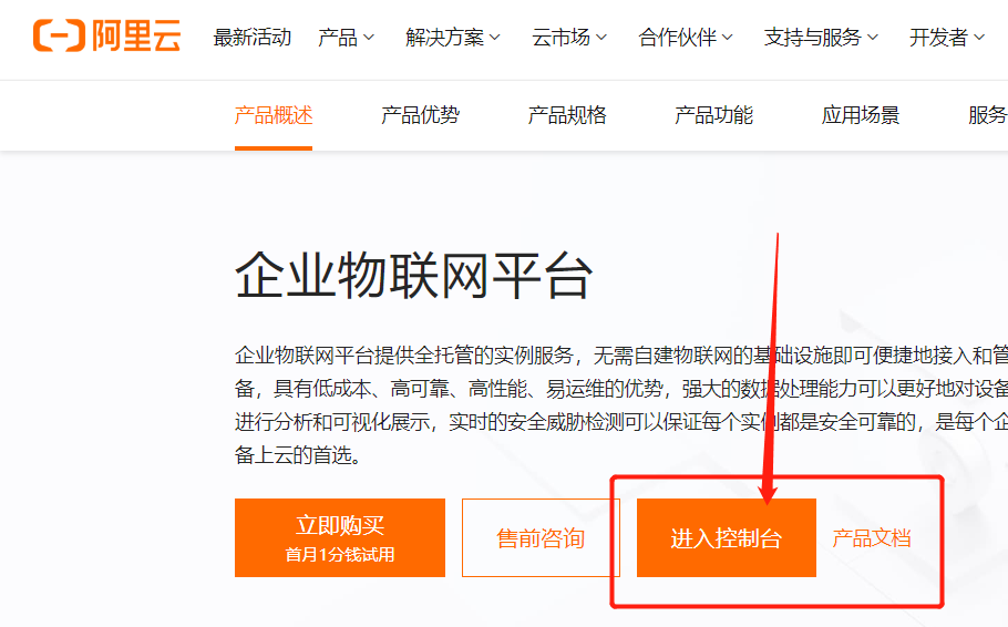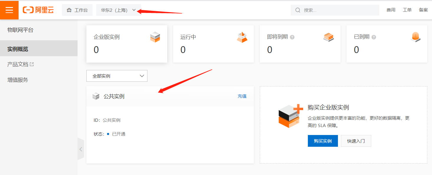 百度:阿里云——产品——物联网IOT——企业物联网平台——进入控制台——选择华东2——进入公共示例