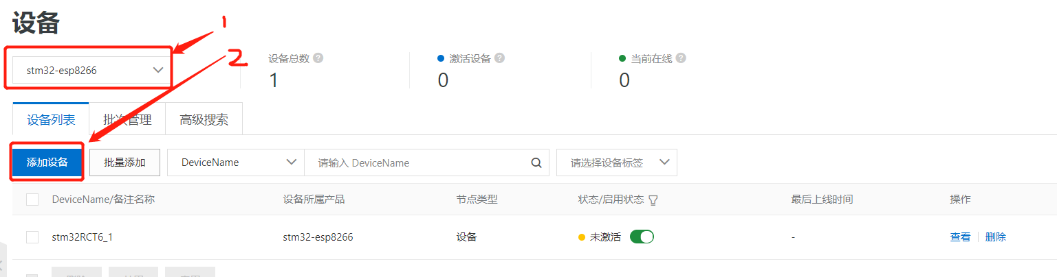 单击左侧导航栏设备管理 > 设备,进入前面建立的设备的详情页
