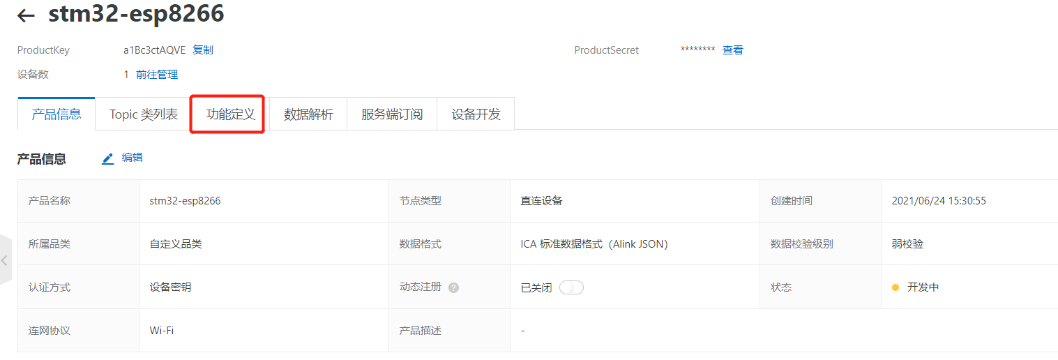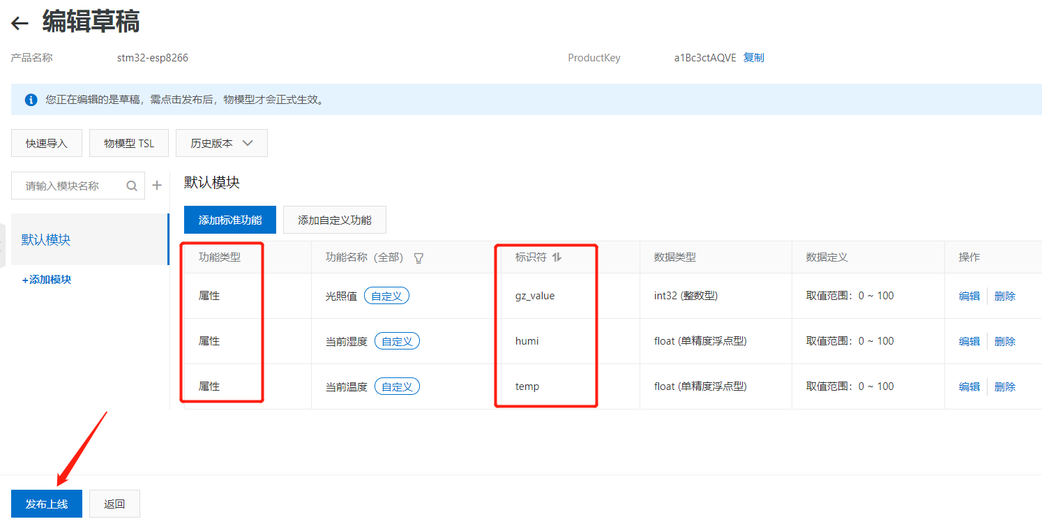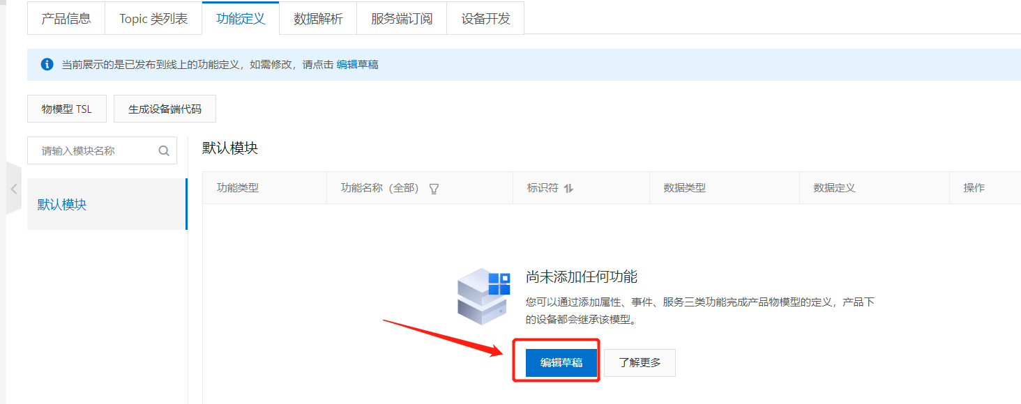 查看设备——功能定义——编辑草稿——添加自定义功能——发布功能
