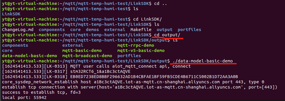 6、make无错误之后进入到output目录,运行datamodel-basic-demo