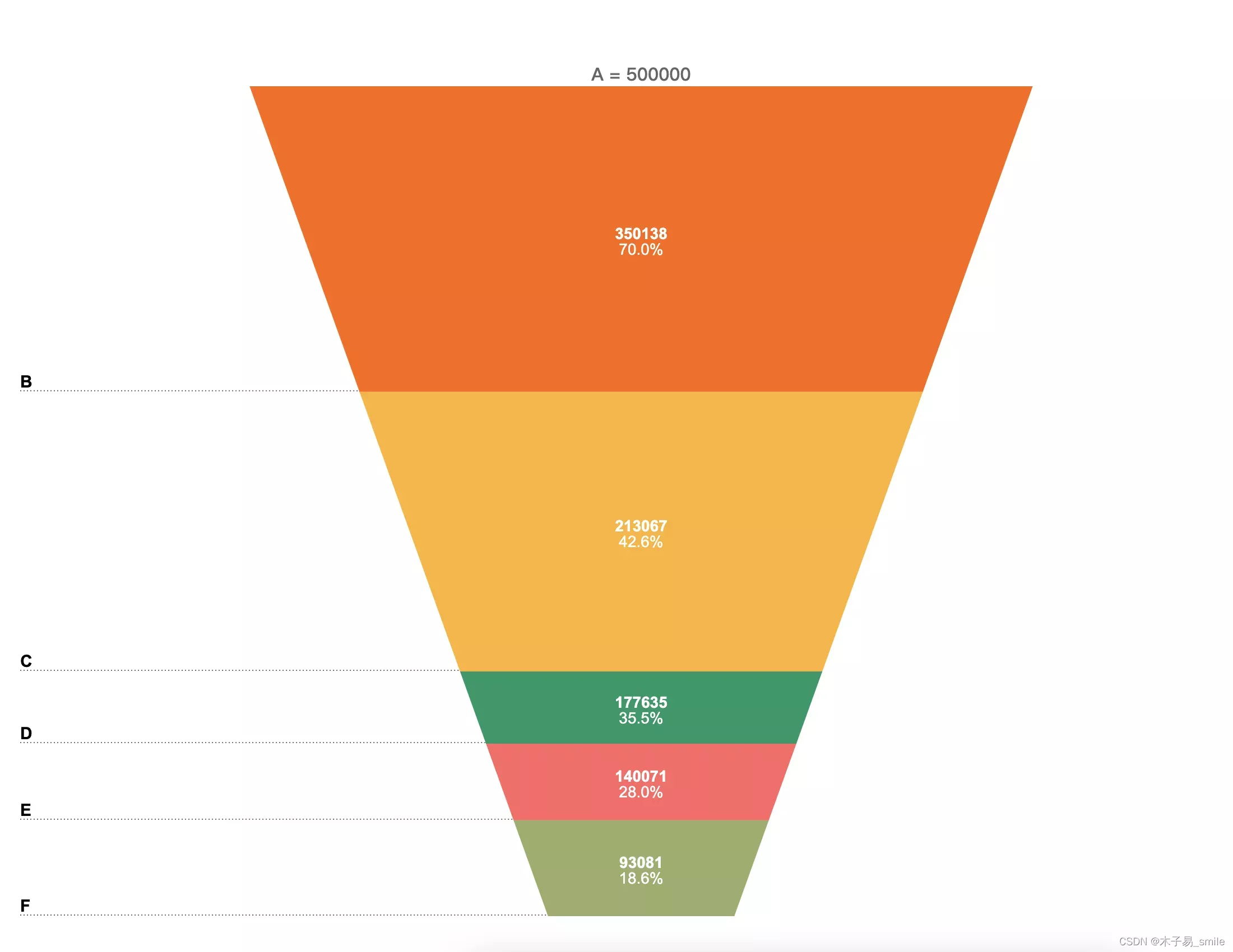 漏斗图由漏斗分层和漏斗层宽决定,其中漏斗分层即为数据维度,而漏斗层宽为数据度量。由数据的维度决定。