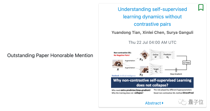 除此之外,同样来自上交大的校友、Facebook科学家田渊栋一作的论文,也获得了杰出论文奖荣誉提名。