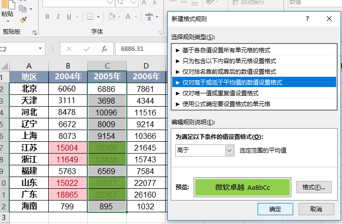 与突出显示单元格不同的是,项目选取指定的规则指定值是对原始数据经过计算的数据。