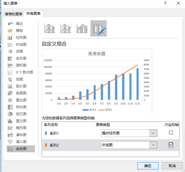 需切换行列,设置收入和收入占位为次坐标轴,删除销售占位和收入占位的标签。