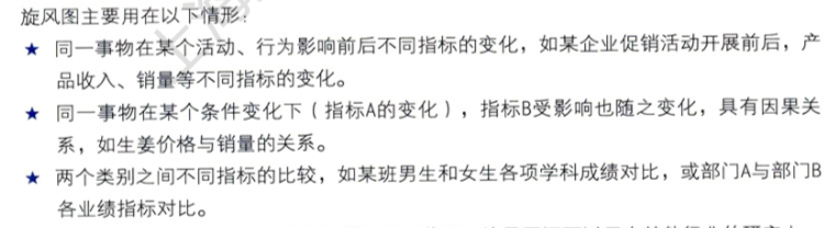 用于衡量相关性的图还有柱形图、对称条形图(旋风图)、散点图、气泡图。