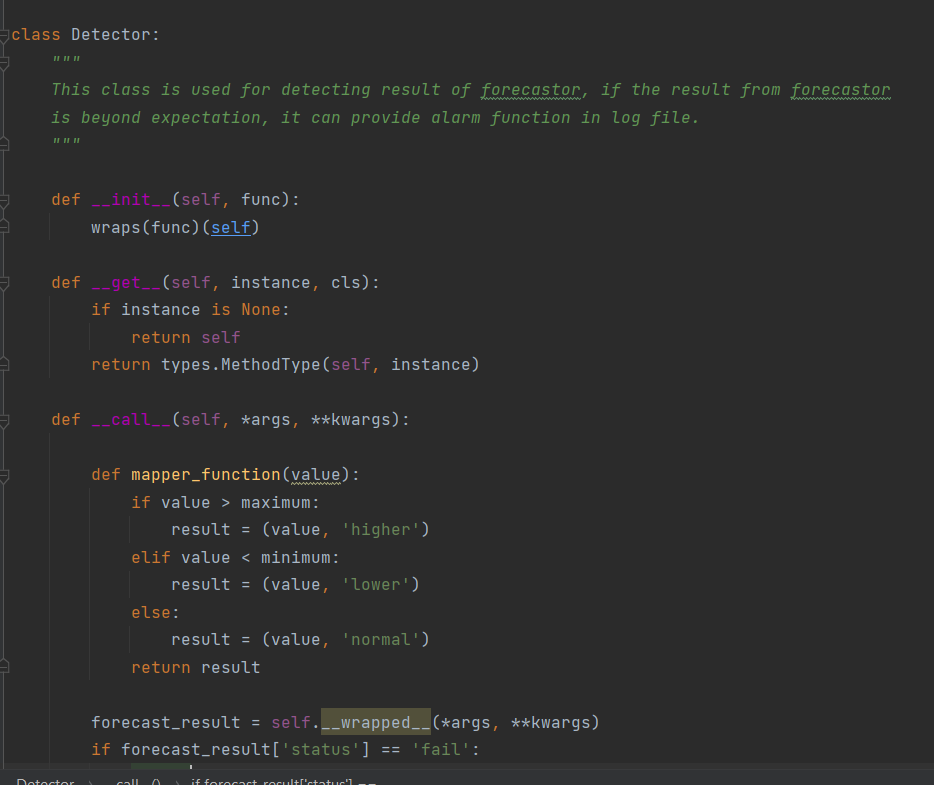6. Monitor中detecor类,该类用于检测预测器预测的结果是否超出预期,如果超出预期,就会在日志文件中产生一个警告