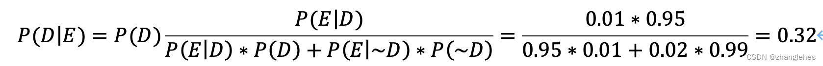 - 这里需要做一个转换,P(~D|M) = 1-P(D|M)和P(~D|~M) = 1-P(D|~M)。则P(M|~D)=0.0016